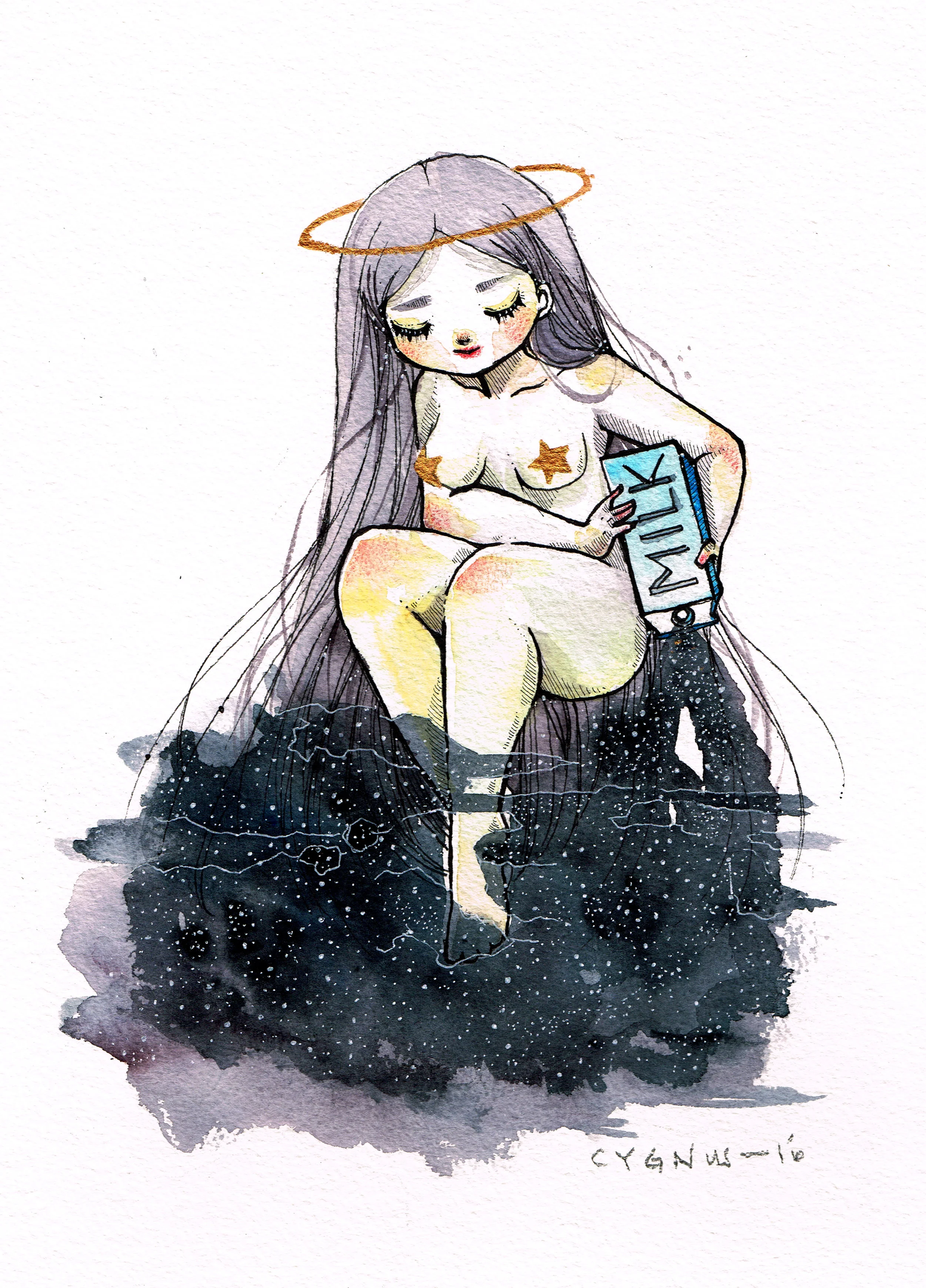 "Galaxy Girl" - Watercolor on 300 lb (640 gsm)